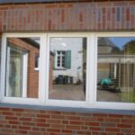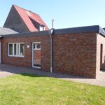 Zweigeschossiger Backsteinbau, giebelständig, 3:3 Achsen, Blausteinfensterbänke, aus 1837, 1991 renoviert, H. Classen