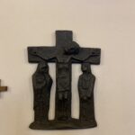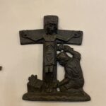 An der Chor-Außenwand Kreuz mit Kruzifuxus, Gußeisen, Höhe 1,72 m, ehemaliges Grabkreuz, seit 1986 an dieser Stelle.