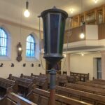Dazu aus der Pfarrchronik von Pfarrrer Joussen: „In der Sakristei, auf der Empore, auf dem Dachboden und im Turm fand ich prächtige, zu den Altären passende Kerzenleuchter, die jedoch zum Teil verbogen, beschädigt und stark verschmutzt waren. Diese brachte ich zum Kunstschmied Egino Weinert nach Köln. Dort wurden die Kerzenleuchter restauriert und versilbert, so daß diese nun eine wertvolle Bereicherung des Barockaltar darstelle.“ - 6 silberfarbene Altarleuchterm(im Jahr 1984, angeschafft bzw. gespendet)