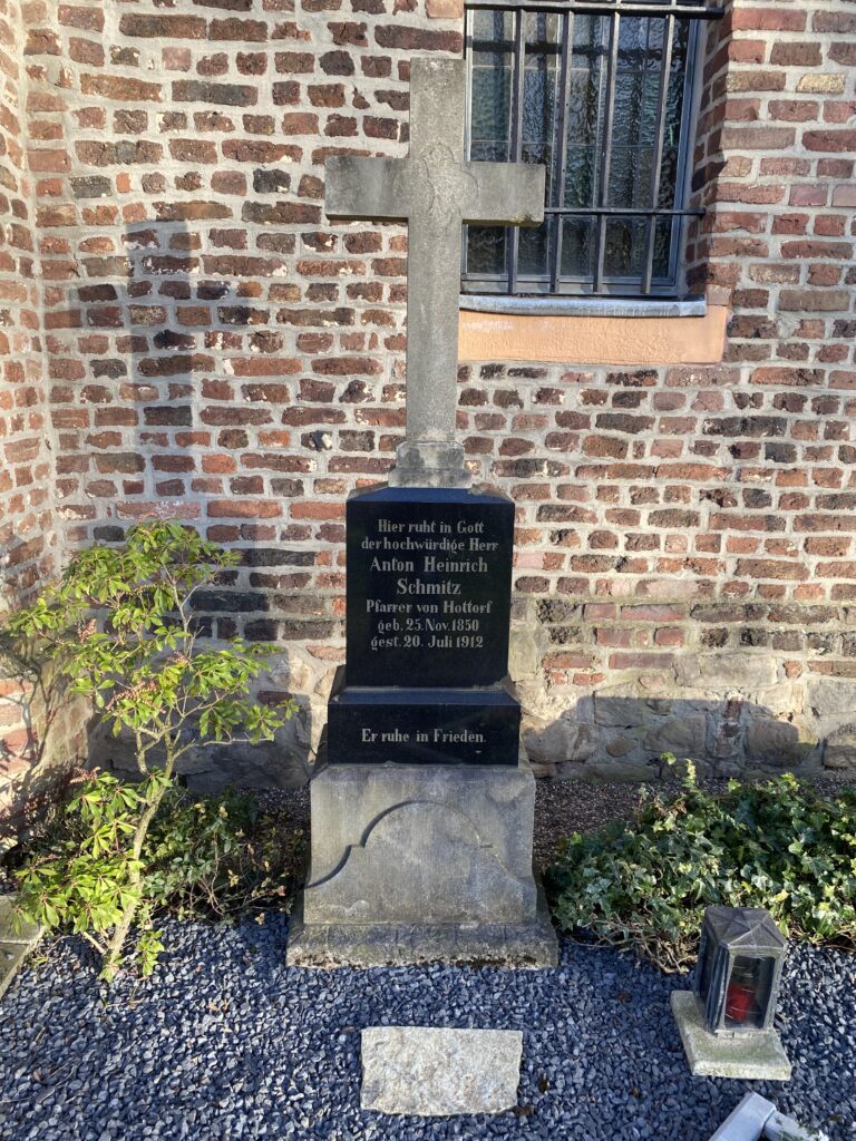Vor der Kirche: Grabstein des Rektors Constantin Adam Dierna der im Jahr 1765 (vermutlich im April) gestorben ist. Die Platte erinnert an den Rektor der freien Kapelle und enthält folgende Inschrift: ANNO DOMINI 1765 OBYT ADMODUM REVERENDUS DOMINUS CONSTANTINUS ADAMUS DIERNA RECTOR LIBERAE CAPELLAE IN HOTTORF AETATIS 71 SACERDOTY 22 RECTORATUS45 R - IN - S - P