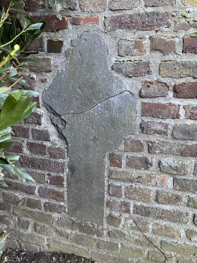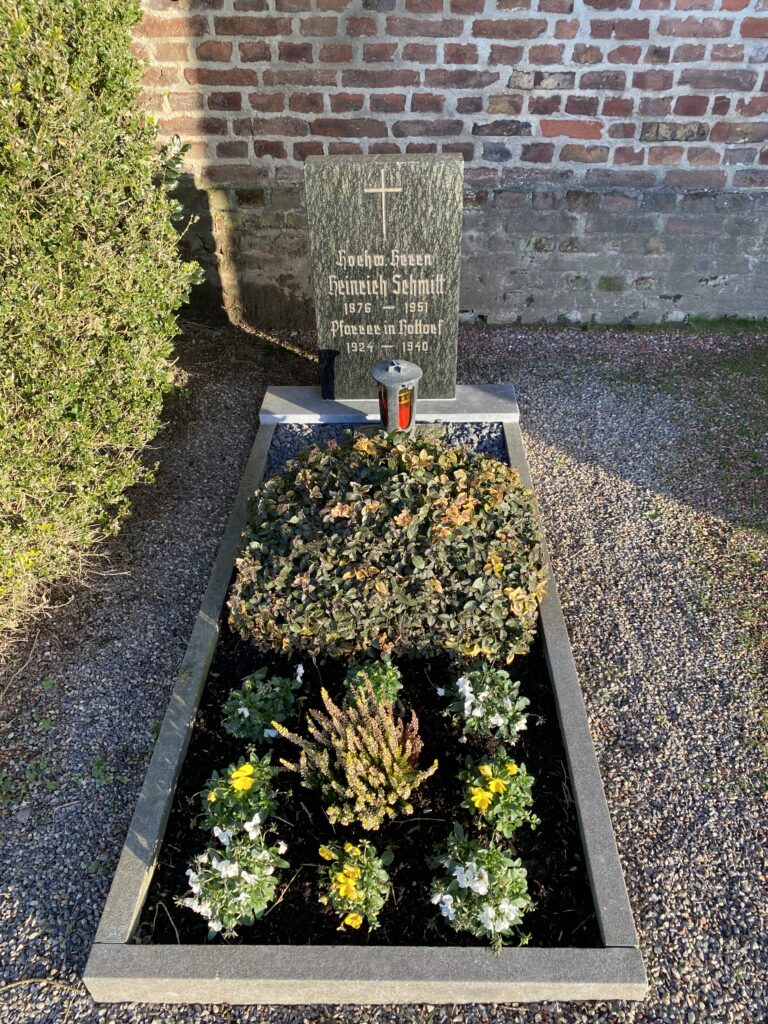 Am nordwestlichen Eingang des Friedhof (neben der Kirche) liegt die Grabplatte des Pastors Wilhelm Habrich (+1653) aus Blaustein. Diese Platte befand sich bis zum Ende des 2. Weltkrieges mit dem Grab hinter dem Hochaltar in der Kirche.